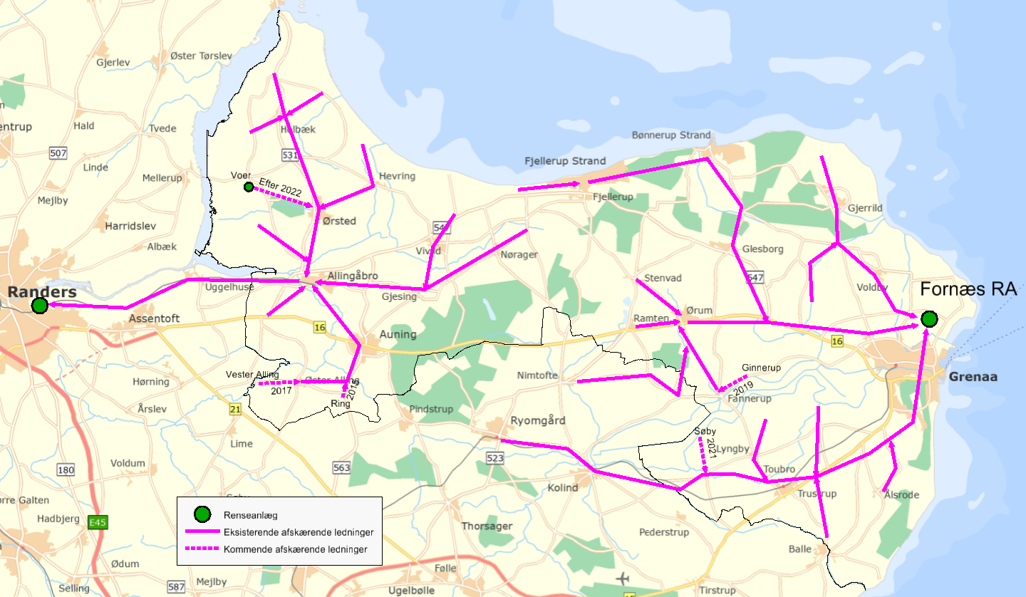 Her ses renseanlægsstrukturen i kommunen (excl. Anholt).